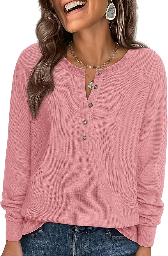 - Designed for all-day comfort, this relaxed-fit henley top features long raglan sleeves for unrestricted movement. The classic solid color easily complements any outfit, while the premium craftsmanship makes it a wardrobe essential