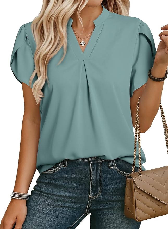 - MATERIAL: Made from high-quality fabric, this womens dressy tops is soft, lightweight, breathable, comfortble, and feels cool to touch. When you wear these petal sleeve chiffon blouses, you will feel the fabric is silky smooth and skin friendly