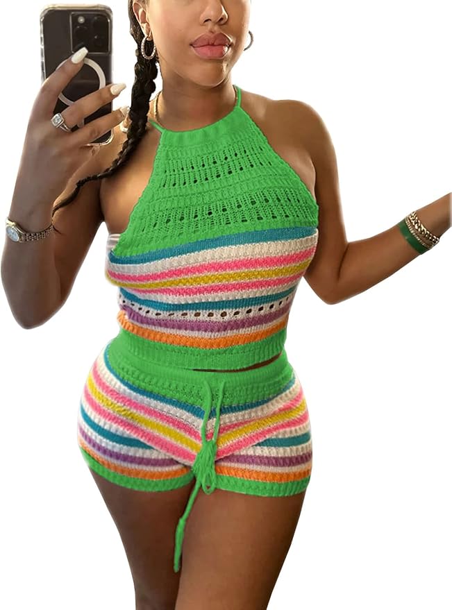 - Crochet sets two piece women are made of high-quality polyester and cotton.Skin-friendly, breathable,and stretchy,they are beach vacation essentials.