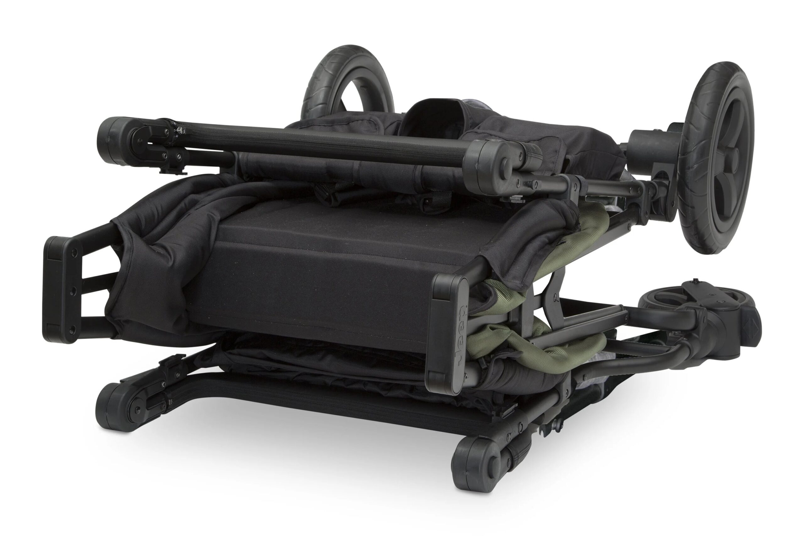 The Jeep Deluxe Wrangler Stroller Wagon by Delta Children combines the features of a double stroller with the durability of a wagon. Perfect for parks, beaches, or sporting events, it accommodates children of various ages. Use the included adapter for infant car seats or the two seats with 5-point harnesses for older kids. A UV-blocking canopy and pull-down shades offer sun protection. The wagon includes a removable cooler bag, parent organizer, cup holder, and multiple storage pockets. It features all-terrain, puncture-proof airless tires and swivel front wheels for easy maneuvering. Push or pull with adjustable leatherette handlebars. It folds compactly with quick-release back wheels for easy storage. Suitable for children up to 110 lbs. Weighs 46.6 lbs.