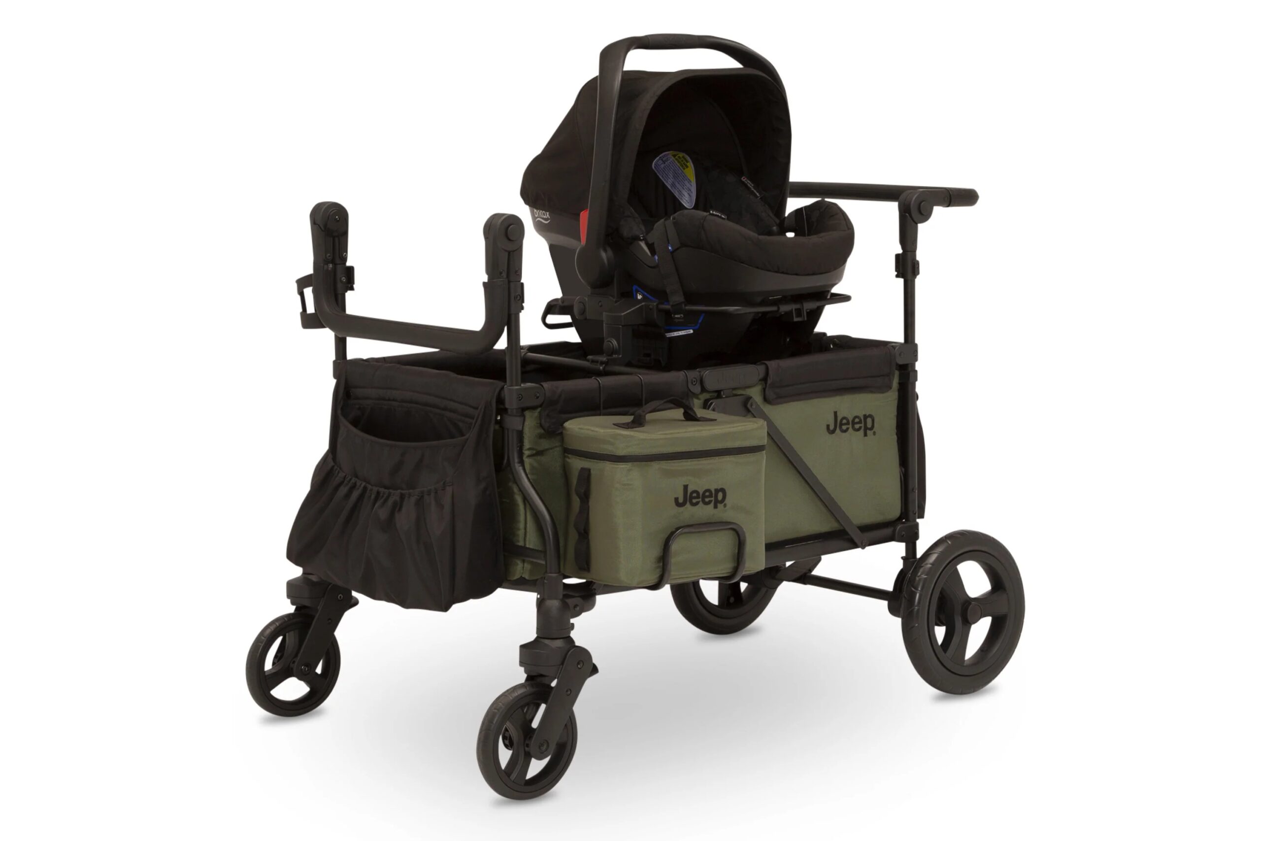 Jeep Deluxe Wrangler Stroller Wagon with Cooler Bag, UV Canopy, All-Terrain Tires, 5-Point Harness, for Kids Up to 110 lbs
