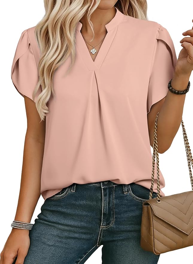 - MATERIAL: Made from high-quality fabric, this womens dressy tops is soft, lightweight, breathable, comfortble, and feels cool to touch. When you wear these petal sleeve chiffon blouses, you will feel the fabric is silky smooth and skin friendly
