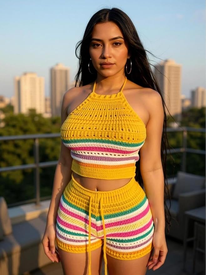 - Crochet sets two piece women are made of high-quality polyester and cotton.Skin-friendly, breathable,and stretchy,they are beach vacation essentials.